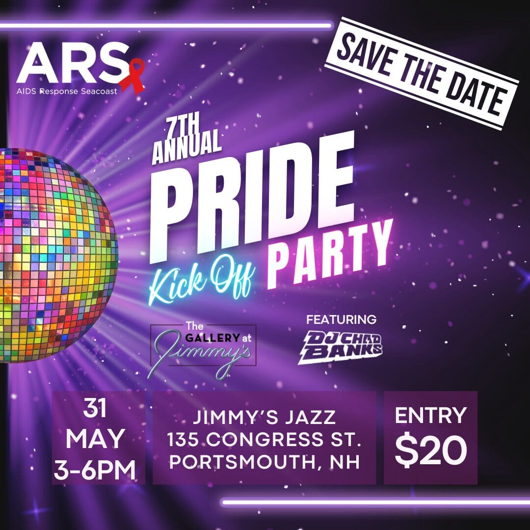 Join us on May 31st from 3-6PM at The Gallery at Jimmy’s Jazz to for a Pride Kick-Off fundraiser, benefitting AIDS Response Seacoast! Enjoy music by DJ Chad Banks, incredible drag performances, signature cocktails, and more! Tickets are $20 and are available at the door.